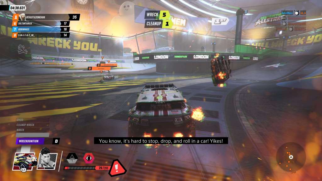 Deze vehicular combat action-racer ziet er meteen enorm flashy uit. De grafische stijl combineert de lollige jeugdigheid van Fortnite, de flitsende flow van Rocket League en de chaotische flair van Burnout. De gameplay heeft ook heel wat weg van die twee laatstgenoemden, met een stevige scheut Wreckfest eraan toegevoegd.