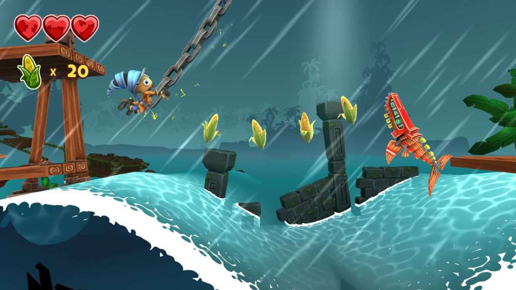 Stitchy in Tooki Trouble is een 2.5D platformgame waarin we in de huid kruipen van de vogelverschrikker Stitchy. Hij is op revanche uit, want zijn veld werd volledig leeggeroofd door de Tooki, een vreemd ras van houten wezens die een bizarre fascinatie hebben voor mais. Zijn avontuur brengt hem zo langs een arsenaal aan verschillende omgevingen, gaande van maisvelden, tropische eilanden en sneeuwvlaktes.