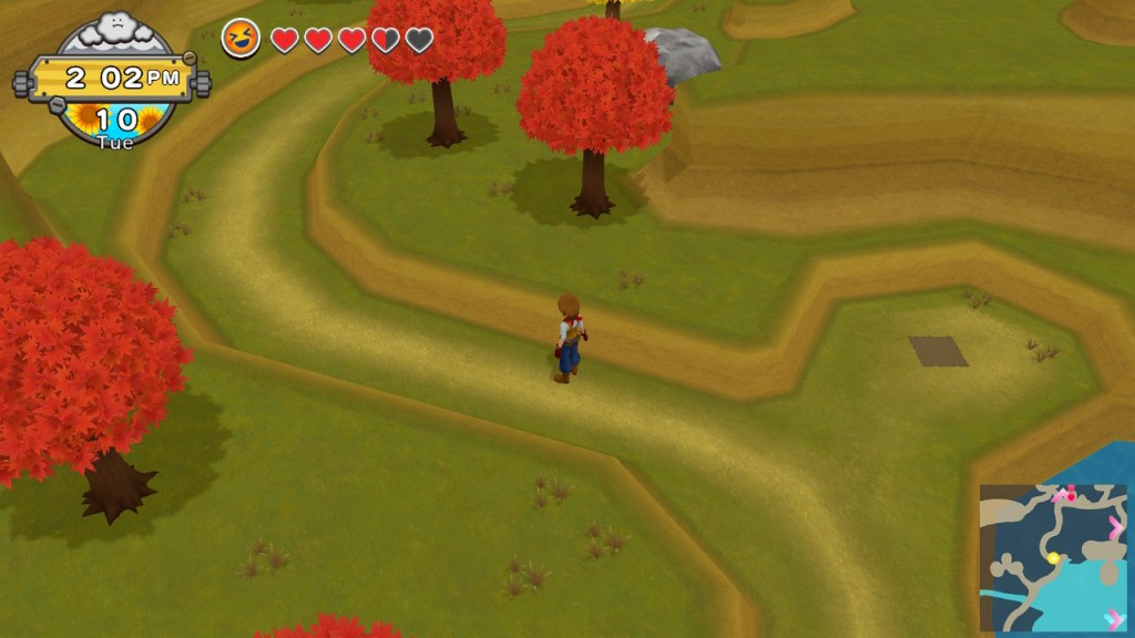 Zo ontdek je bijvoorbeeld de wereld tussen het provisoire boerenleventje door. Jammer genoeg is de wereld van deze Harvest Moon het ontdekken gewoonweg niet waard. Op zoek gaan naar zaden in deze wereld gaat al snel als een sleur aanvoelen, wat problematisch is voor een game die nog steeds als farming simulator door het leven gaat.