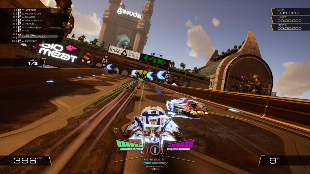 Je hebt de keuze uit flink wat verschillende modi waarin je het beste van jezelf kan geven. Een van de leukste modi vond ik de standaard- en eliminatieraces. Maar er zijn ook modi waarbij je gebruik maakt van wapens om je tegenstanders uit te schakelen. Tijdens de race kan je in ware Mario-Kart-stijl over lichtgevende iconen vliegen. Deze geven geen aanvalswapens, maar laden eerder gekozen wapens op.