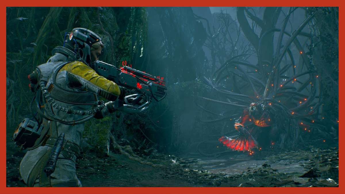 In Returnal gaan we op stap met de avontuurlijke astronaute Selene die met haar ruimteschip crasht op de planeet Atropos.