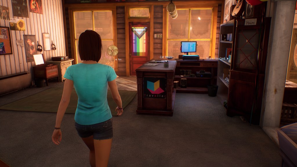 Wavelengths graaft naast Steph nog één ander personage uit de originele Life is Strange op. Aan de hand van interacties met dit personage ontdek je hoe de andere lotgenoten uit de eerste game met de feiten omgingen en welke indruk de gebeurtenissen op hen nalieten. Na mijn playthrough van de eerste game in de reeks maakte ik de moeilijke keuze om Chloe op te offeren en het stadje Arcadia Bay te redden. Door die keuze focust de storytelling in Wavelengths sterk op de relatie die Steph had met Chloe. Nu pas stond ik stil bij hoe beide personages op elkaar gelijken. Beiden zijn ze niet-hetero misfits met een voorliefde voor alternatieve muziek en de nodige portie rebellie. Wavelengths slaagt erin om deze best goed uitgewerkte personages die je al kende nóg meer diepgang te geven.