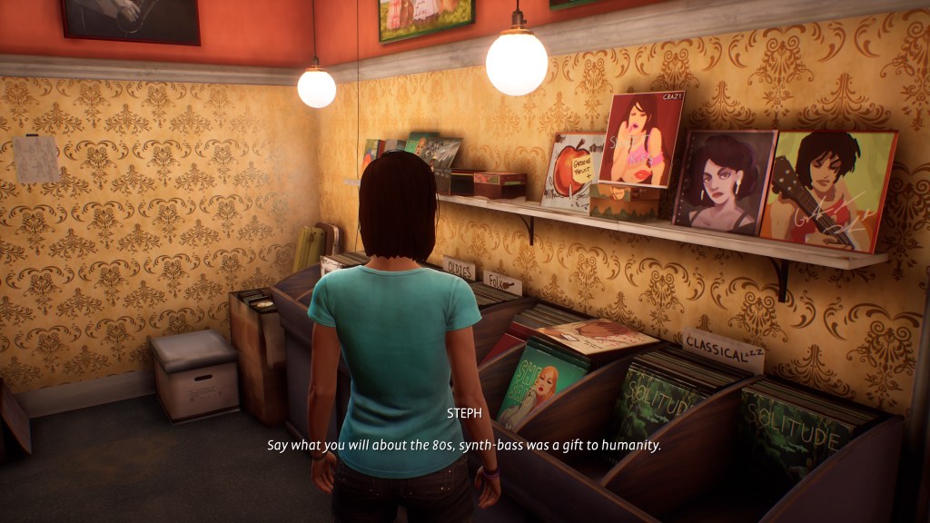 Er komen ook geen andere personages fysiek langs in de platenwinkel, waardoor quasi iedere interactie die je hebt neerkomt op SMS’en die Steph uitwisselt met haar vrienden. Dit betekent dat je vooral een hoop zal lezen in deze uitbreiding. Niet dat dat een groot probleem is. Life is Strange steunt al langer op deze vorm van storytelling. Toch had ik graag nog wat meer bekende gezichten zien passeren, al was het maar bij wijze van afwisseling.