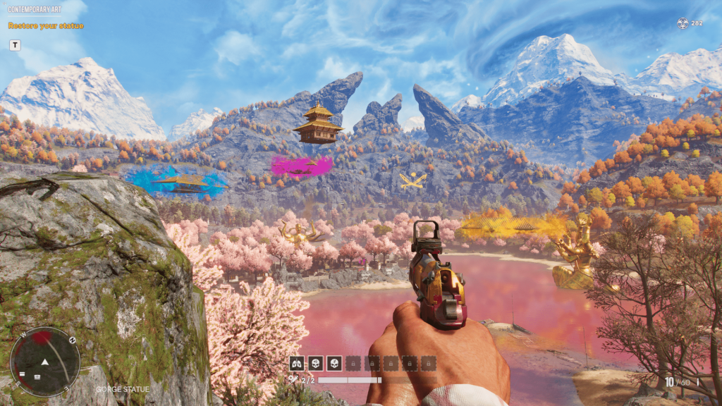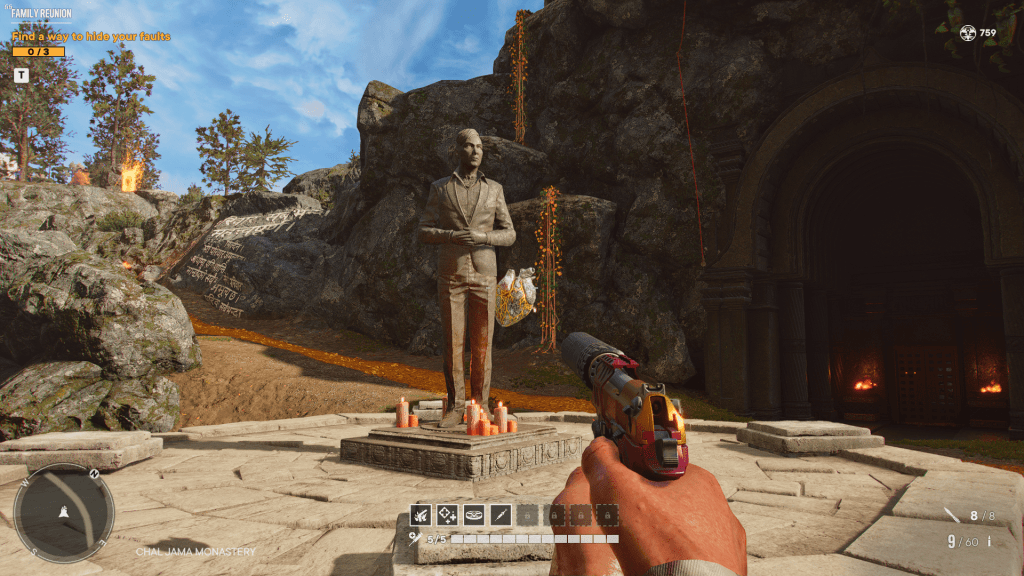 Net zoals bij Vaas: Insanity duik je onder in het gestoorde brein van een iconische Far Cry-slechterik. Als Pagan Min, de narcistische klootzak waartegen je strijdt in Far Cry 4, herbeleef je de feiten van die bewuste game als een soort koortsdroom op anabolen. Wie ooit de vierde mainline titel in de reeks speelde, zal zich dan ook meteen thuisvoelen in de kleurrijke setting van deze DLC. Aan jou om the mind of Pagan Min te ontsnappen. Dit doe je – alleen of met een partner in co-op – door verschillende challenges op te lossen in de absurde spelwereld. Wie erin slaagt te ontsnappen, kan alles vlotjes overdoen op een hogere moeilijkheidsgraad in een nieuw unlocked mind level.