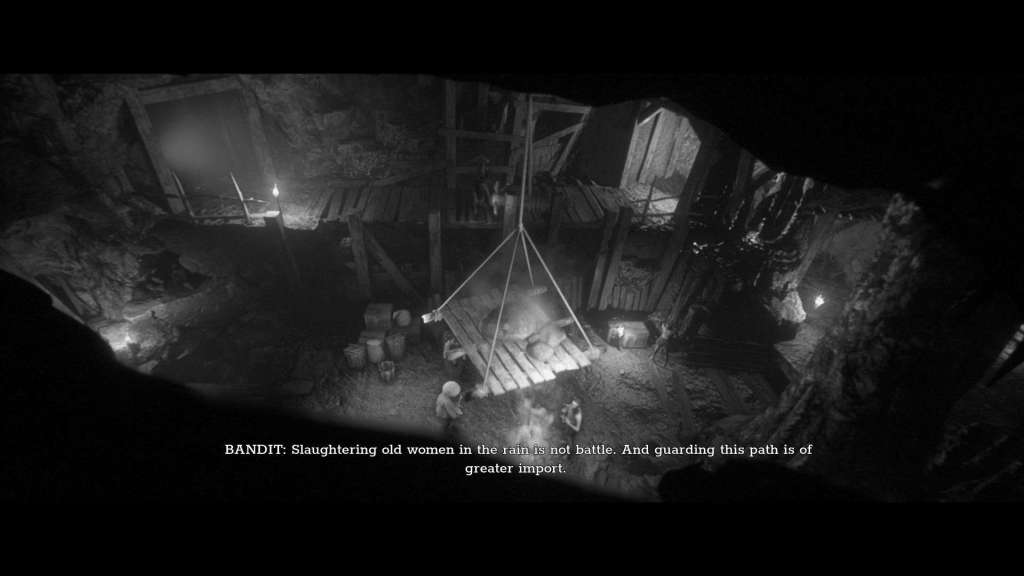 In zijn meest pure vorm is Trek to Yomi een side-scrolling vechtgame uit de oude doos waarin goede timing en handvaardigheid centraal staan. De game onderscheidt zich in z’n presentatie, die zowel auditief als visueel de mosterd haalt bij klassieke Japanse cinema. Denk Seven Samurai en Yojimbo. En die inspiratie gaat een pak verder dan de kenmerkende zwart-wit look en ijzersterke Japanse voice cast.