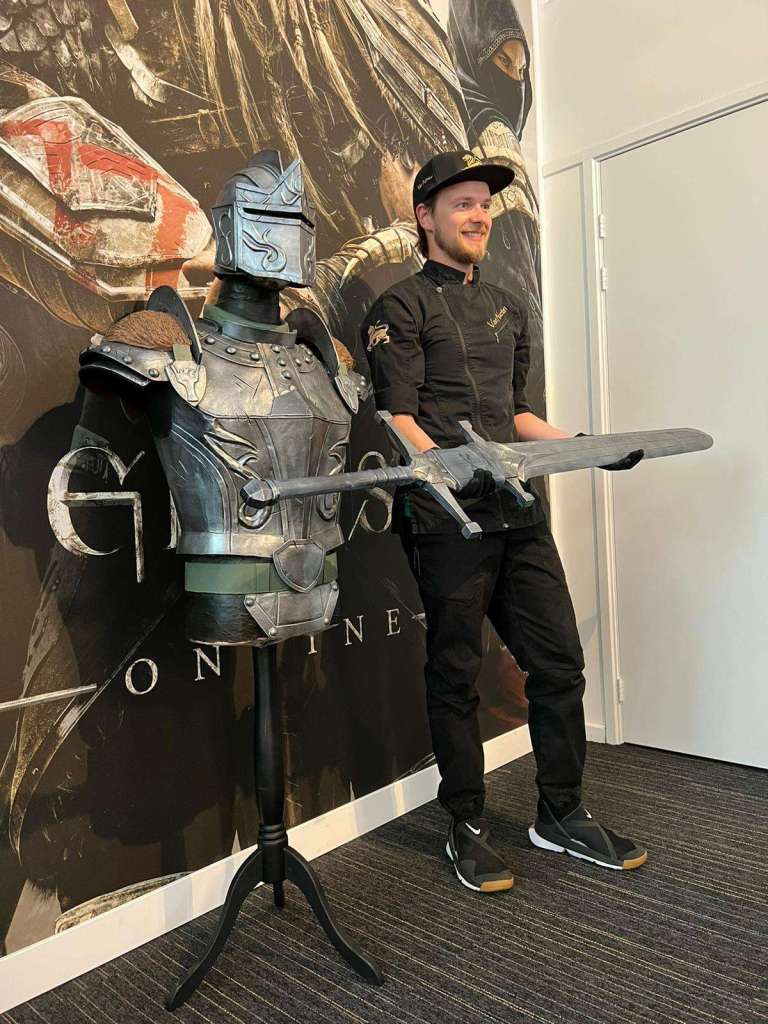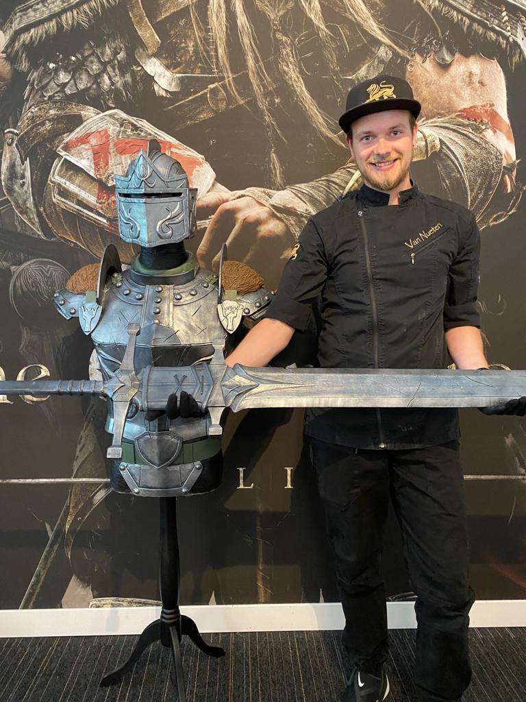 Neem nu deze Oliver Van Nueten. De topchocolatier werkte meer dan 150 uur aan een replica van de uitrusting van de bad guy uit The Elder Scrolls Online: High Isle. Het harnas, de helm en het zwaard, alles werd tot in de details uitgewerkt en in chocolade gegoten.