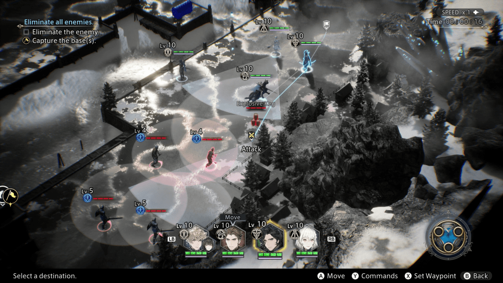 Natuurlijk is het belangrijkste aspect in The DioField Chronicle de combat. Eenmaal een missie gekozen op de map zal je automatisch starten op de plaats waar de actie zich afspeelt. Persoonlijk vind ik dit soort game, best te spelen met muis en keyboard, maar ik moet toegeven dat het met de controller zeker niet slecht speelt. Je kan de personages apart of tesamen aanduiden en ze laten bewegen naar een specifieke plaats. Elk personage heeft zijn unieke acties die je kan gebruiken tot je EP op is.