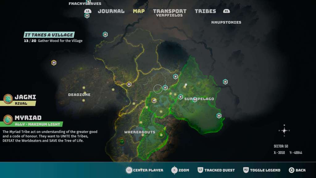 Tijdens het ontdekken van de wereld van Biomutant, zal je heel wat missies kunnen accepteren. Zowel hoofd -als zijmissies komen in grote getalen aanbod. Terwijl ik bezig was met een hoofdmissie, gebeurde het soms dat ik vijf nieuwe missies accepteerde. Ik opende de map om te kijken of de nieuwe zijmissies in de beurt waren, zodat ik deze even snel kon uitvoeren. Ik speelde de game gebied per gebied, want anders zou ik het overzicht snel verliezen omtrent de hoofdmissie.