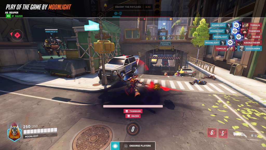 Daarnaast vind ik het enorm plezant om de vele spelmodi, en dat zijn er heel wat, uit te proberen. Unranked, Arcade, Custom, Competitive en Training en die allemaal nog eens opgevuld met onder andere Team Deathmatch, CTF, Duel, Rscort, Control, Push, Elimination, Low Gravity en zo kan ik nog even doorgaan. Verveling krijgt geen kans bij Overwatch 2. Ben je er eentje beu, dan speel je gewoon een andere. En dit op een van de vele goed uitgewerkte mappen.