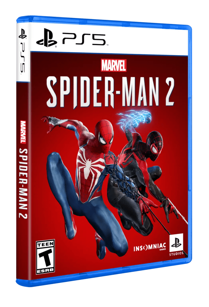 Onderstaande box art siert de Standard Edition van Marvel’s Spider-Man 2. Deze zal beschikbaar zijn voor € 79,99. Wie de game pre-ordered, krijgt een Arachknight Suit voor Peter met drie extra kleurvarianten, een Shadow Spider Suit voor Miles met drie extra kleurvarianten, een early unlock Web Grabber gadget en drie skill points om mee aan de slag te gaan.