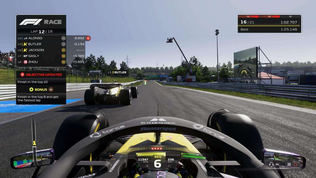 Naast sleutelen onder de motorkap, maakt Codemasters in F1 23 ook werk van meer aantrekkelijke modi. Persoonlijk ben ik zeer verheugd dat Braking Point terugkeert na een jaar afwezigheid. In dit vervolg op de verhaalmodus uit F1 21 volg je verder het verhaal van Aiden Jackson die nu samen met z’n grootste rivaal Devon Butler voor het gloednieuwe Konnersport rijdt.