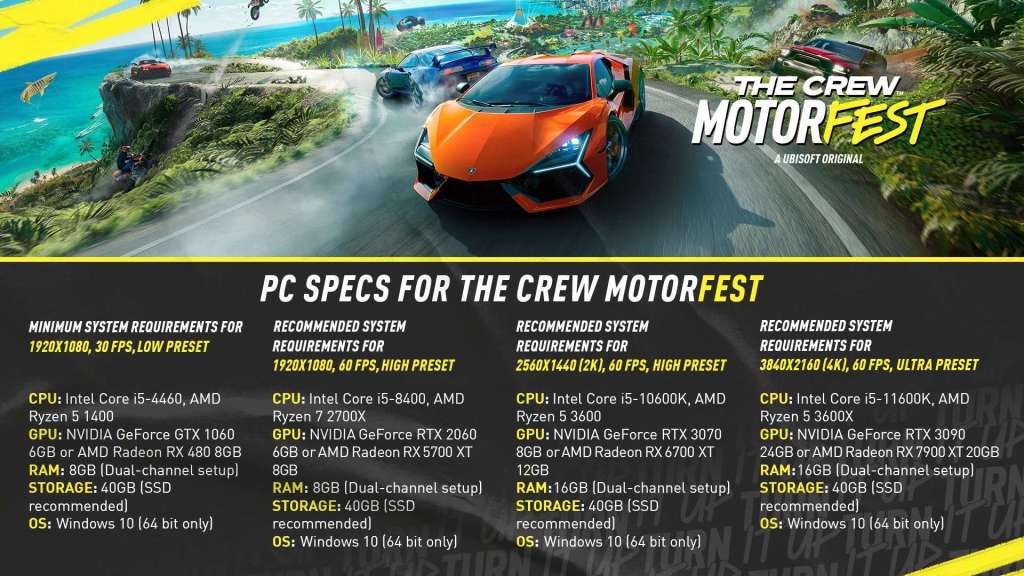 In onderstaande afbeelding kunnen jullie de verschillende systeemvereisten voor The Crew Motorfest terugvinden.