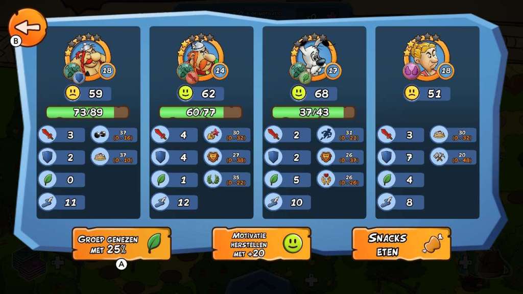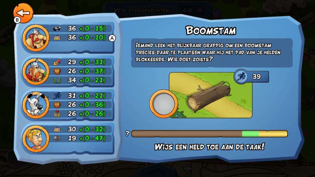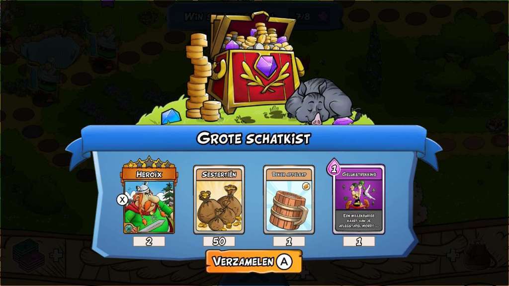 Je kan ook je helden pas sterker maken, wanneer je genoeg kaarten van dat personage vindt. In het begin heb je vijf kaarten nodig en je moet denk ik wat geluk hebben, waar je bepaalde kaarten vrijspeelt, want in mijn speelbeurt van toch iets meer dan tien uur heb ik amper kaarten van Asterix ontvangen, waardoor ik deze kleine Galliër snel op de bank moest plaatsen. Het aantal kaarten dat je nodig hebt om je helden tot een maximum van 5 sterren te krijgen wordt ook steeds vergroot, waardoor het wederom duidelijk wordt dat de ontwikkelaars opteren naar herspeelbaarheid. Een gebrek aan liefde voor de personages en alles eromheen is meer dan duidelijk.
