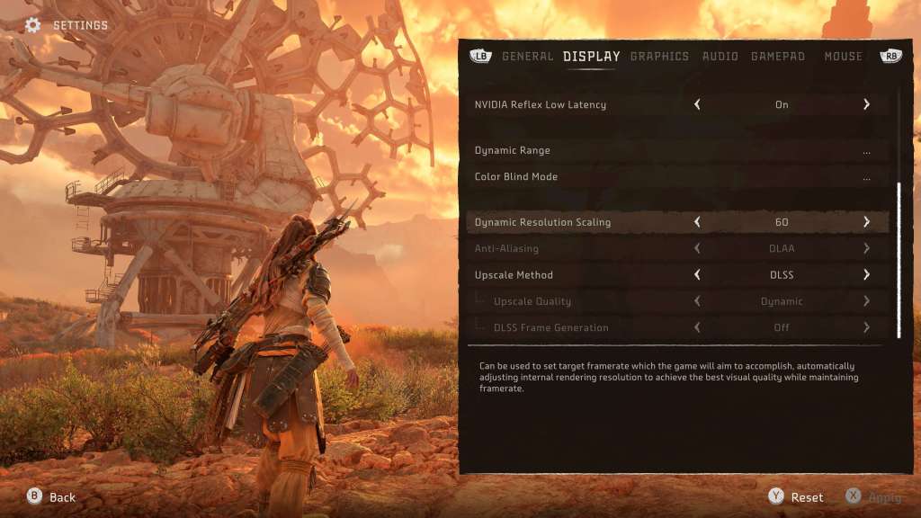 Komen we dus meteen bij het eerste grote verschil met de PlayStation 5-versie: op pc ondersteunt Horizon Forbidden West Nividia’s Deep Learning Super Sampling. Wat dat concreet inhoudt? De game wordt gerenderd aan een lage resolutie om dan via artificiële intelligentie alles weer te upscalen zonder al te veel noemenswaardige artefacten. Wat dat dus nog concreter inhoudt? Een pak meer frames en weinig tot geen verlies in beeldkwaliteit. Heb je uiteraard wel een grafische kaart nodig die het ondersteunt (GeForce RTX 2060 of beter).