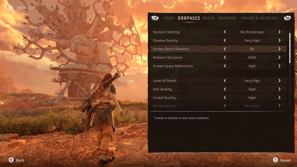 Over dat Settings Menu: de ontwikkelaar heeft geen steen ongedraaid gelaten. Werkelijk alles kan je naar believen instellen. Van vrij ingrijpende visuele effecten als Screen Space Shadows en Ambient Occlusion tot naar mijn gevoel overbodige zaken als Vignette en Chromatic Aberration, over kleuren en smaken valt niet te discussiëren, maar ik geloof wel dat je als je even een tiental minuten wat zaken uitprobeert, je je ding wel zal vinden. Eén van de grootste verschillen met de consoleversie is ongetwijfeld de toevoeging van betere anisotropic filtering. Die kan je op 16x instellen, wat zoveel wil zeggen als dat zelfs in de verte de textures haarscherp blijven.