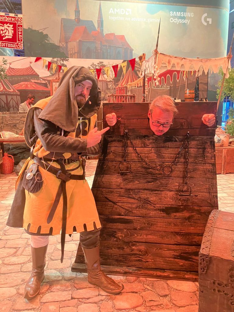Wat mij betreft is er dit jaar een héél duidelijke winnaar qua coolste booth op gamescom. Om te beginnen ziet de booth van Kingdom Come er al geweldig uit. Je hebt een middeleeuws dorp volledig bemand door cosplayers. Je hebt de smid, de vechtarena en een leuk marktje. Heb je de demo van deze RPG gespeeld, dan krijg je een pouch met coins mee.