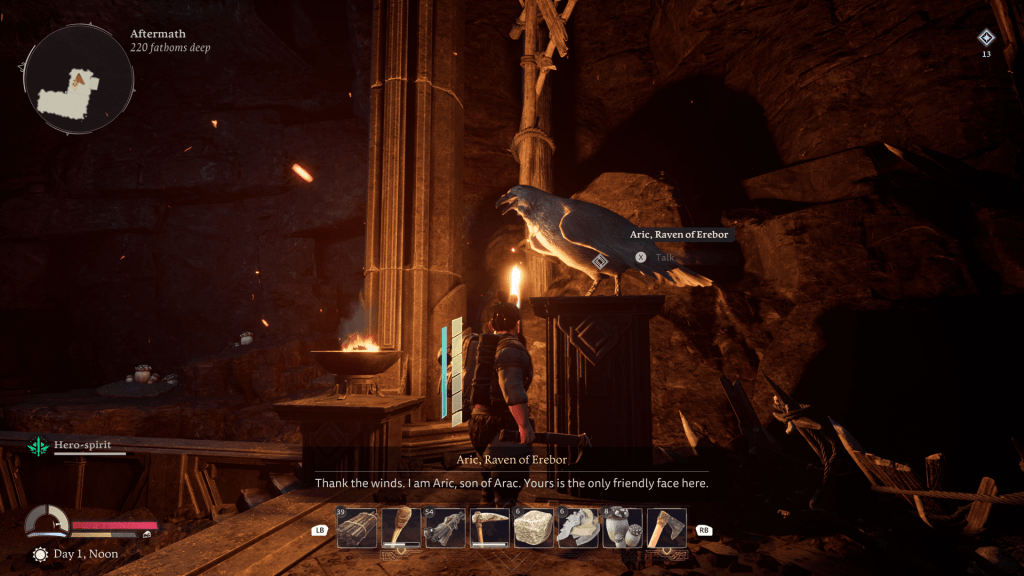 Je weet dat een game in de problemen zit wanneer zelfs de basics niet goed blijken te werken. En bij Return to Moria is dat helaas nog maar het topje van de ijsberg. Eén van de onbegrijpelijke keuzes die de game maakt, is er een lineair verhaal in te steken waarin je van gebied naar gebied moet trekken. Op zich niks nieuws voor survival crafting builders maar het hele nut van het uitbouwen van een basis wordt tenietgedaan wanneer de game je dwingt om er nooit naar terug te keren. Mijn eerste uren in de game spendeerde ik aan het bouwen van een friggin’ coole basis. Om dan te moeten vaststellen dat ik er eigenlijk nooit gebruik van zou maken. Het hele basebuilding concept lijkt overbodig of je zou er plezier moeten in vinden om bij elke locatie telkens een nieuwe base te bouwen.