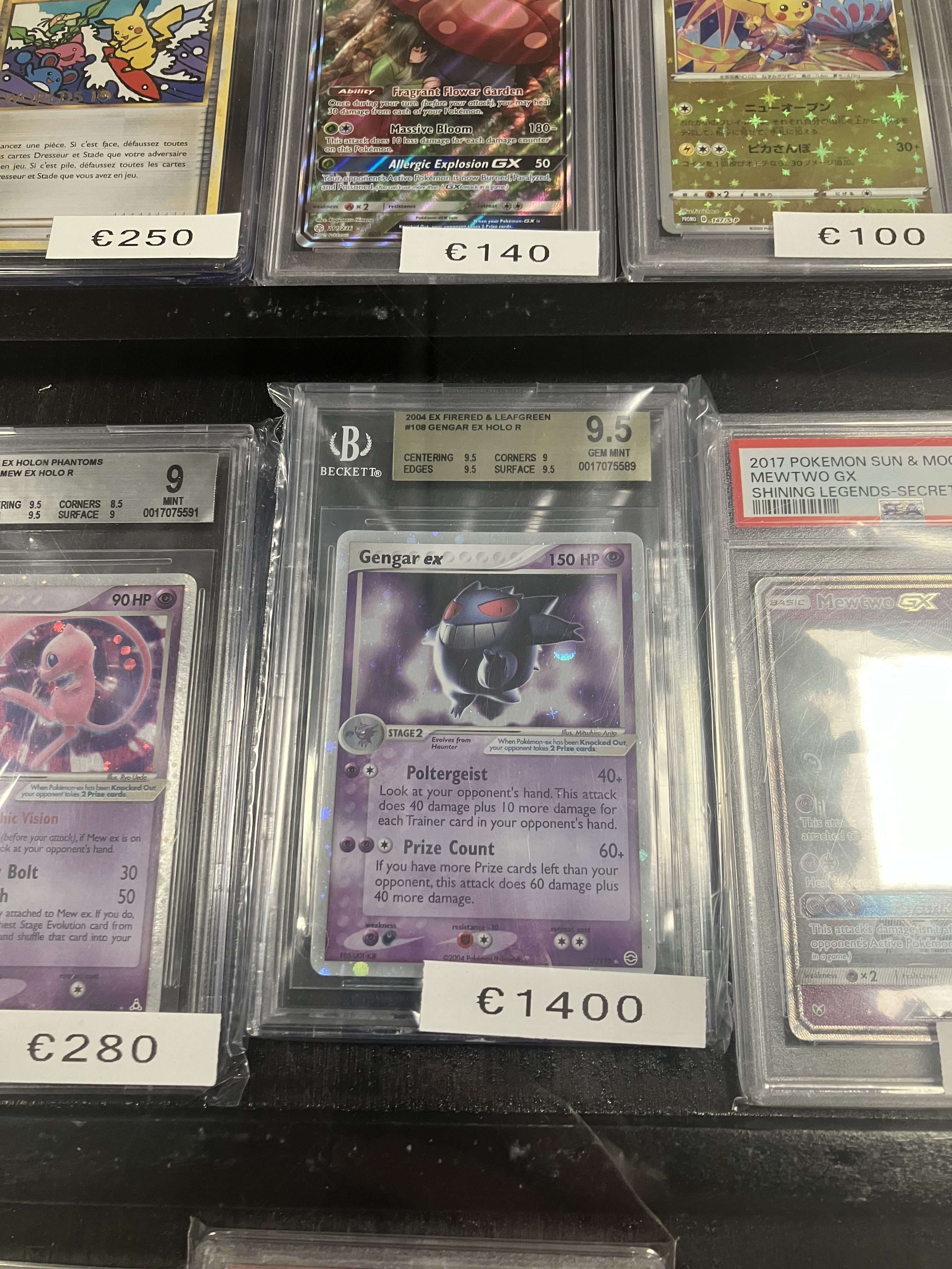 Een retrobeurs die zichzelf profileert als voornamelijk gamebeurs heeft natuurlijk nog heel wat anders in de aanbieding. Comics vormen een groot deel van het aanbod en ook speelkaarten zijn gigantisch populair. We zien Yu-Gi-Oh! en Magic: The Gathering vaak maar worden vooral doodgeslagen door Pokémon. De prijzen gaan van €0,20 voor een kaart tot €1.400. Dat is dus een maandloon voor een Gengar. Geeft die mij elke dag een full body massage ofzo?