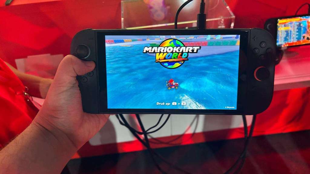 Toen we de zaal voor de eerste keer binnen kwamen mochten we meteen aan de slag met dé launch game voor Nintendo Switch 2: Mario Kart: World. Ik mocht enkele races rijden tegen een collega journalist en ik moet toegeven dat de game een mens toch een pak competitiever maakt.