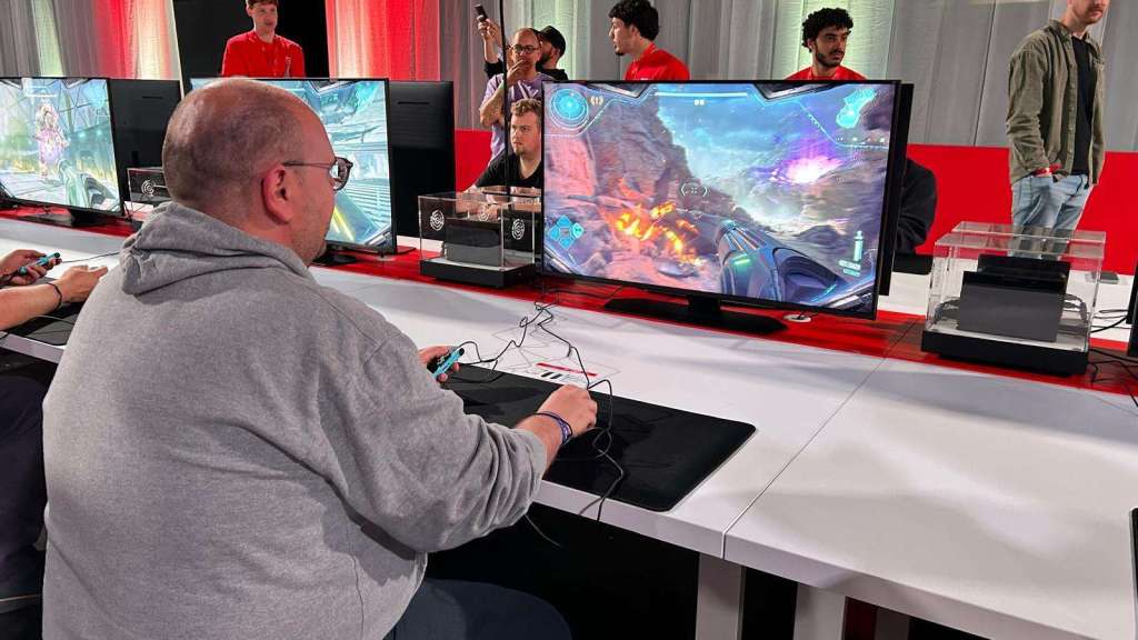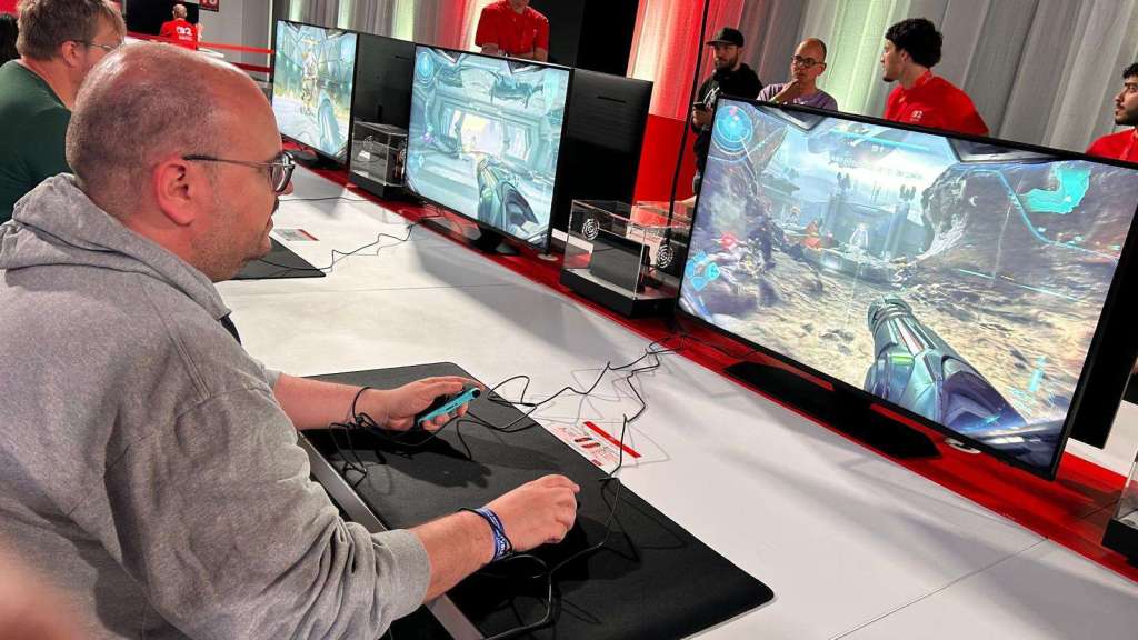 Dé game waar heel wat doorwinterde gamers naar uitkijken is zonder enige twijfel Metroid Prime 4: Beyond. Mijn geluk kon niet op toen bleek dat de game ook aanwezig was en ik er zo’n 15 minuten mee aan de slag kon. Het coole is dat Nintendo ervoor gezorgd had dat we de muis-functie van de joy-con’s voor deze game konden gebruiken, dus op dat vlak sloeg ik meteen twee vliegen in één klap.