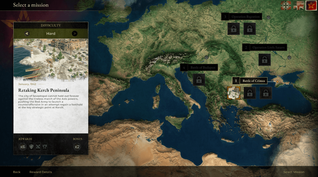 De campagne bestaat uit 25 missies verspreid over Europa en Noord-Afrika. Daarbij wissel je geregeld van factie en doelstellingen, waardoor de game verrassend gevarieerd blijft. De ene missie draait rond standhouden met beperkte middelen, terwijl ik in een volgende met tanks, artillerie en luchtsteun een vijandelijke linie moest openbreken.